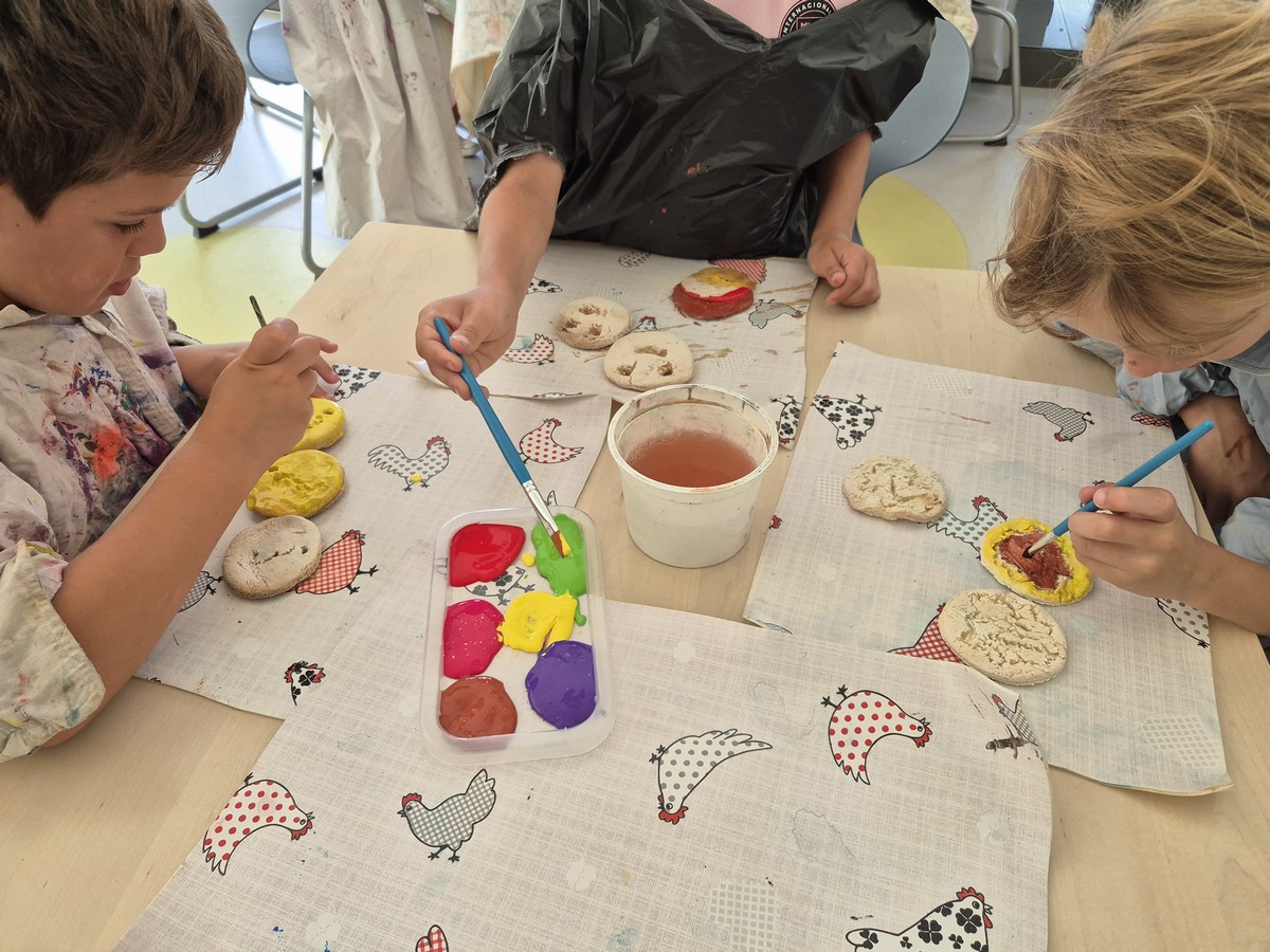 Pendant ce temps, à l’accueil, les enfants ont profité des matinées pour faire des activités sportives et des après-midis pour réaliser des œuvres d’art avec les animateurs. En pleine semaine d’ouverture des JO, nous avons eu du basket, du badminton, des parcours d’agilité et enfin des créations de médailles et de flammes olympiques.